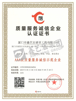 廈門市鑫藝宏建設工程有限公司---國家一級資質(zhì)企業(yè),自2004年成立以來,以卓越的品質(zhì)和一流的服務領先行業(yè),逐步擴展成多元化的現(xiàn)代化綜合型企業(yè)。